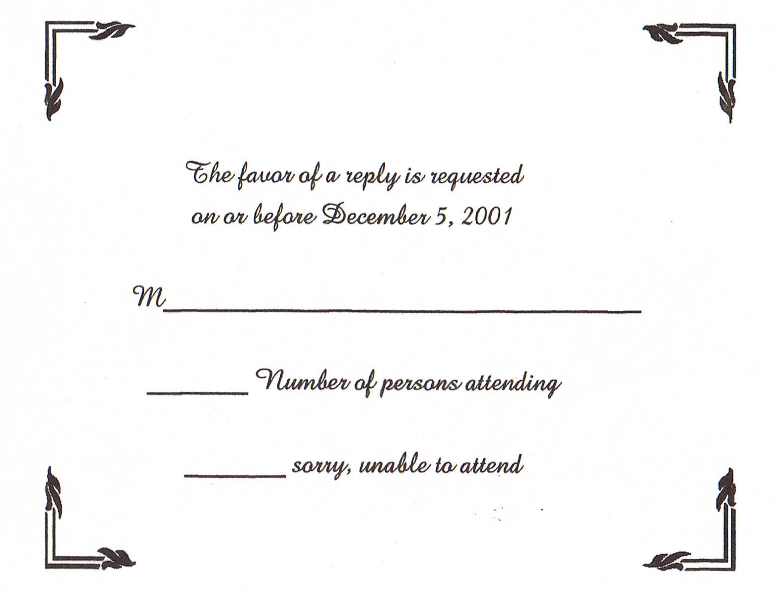 Once again I used Print Shop to make these. I was able to fit 4 reply cards onto one sheet, and if I remember correctly I used the Invitation Template.